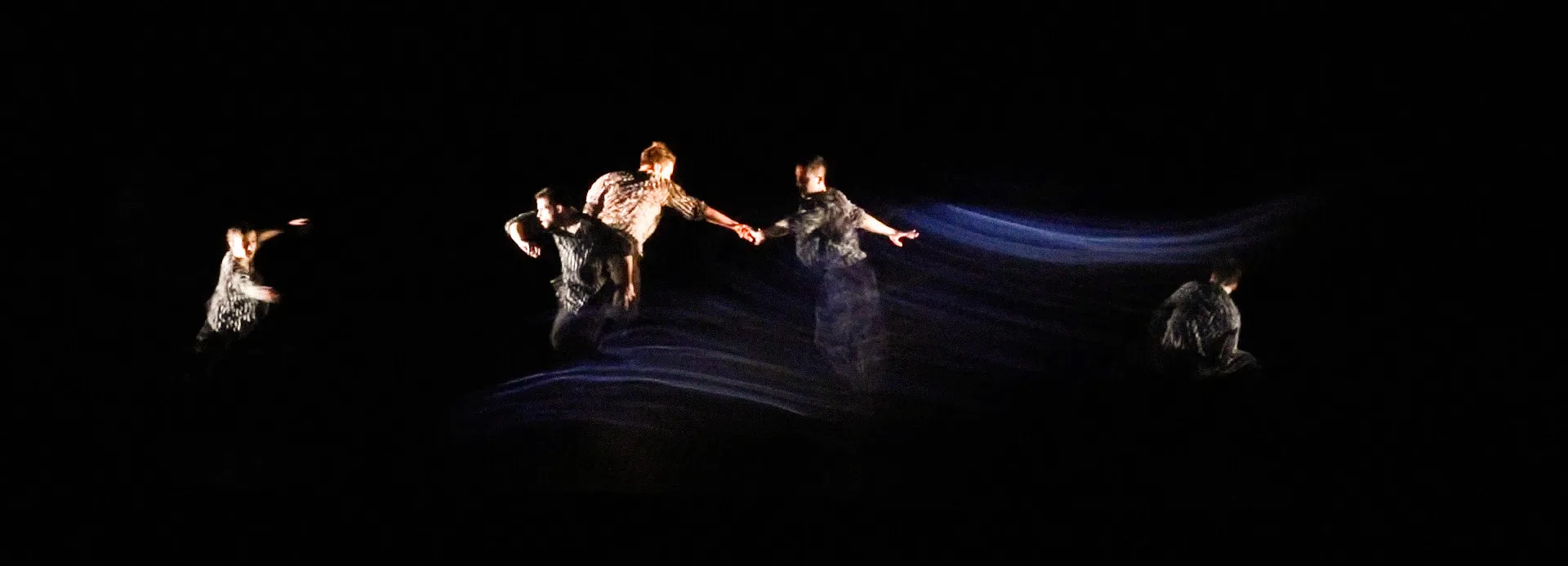 This hybrid performance was set out to explore the themes of time, causality and unpredictability. Similar to how a flutter of delicate butterfly wings can be linked to a tornado, the performance celebrates flowing energy, creating a dynamic space where the dancers' motion effects can be visualized through a layer of Digital Matter.