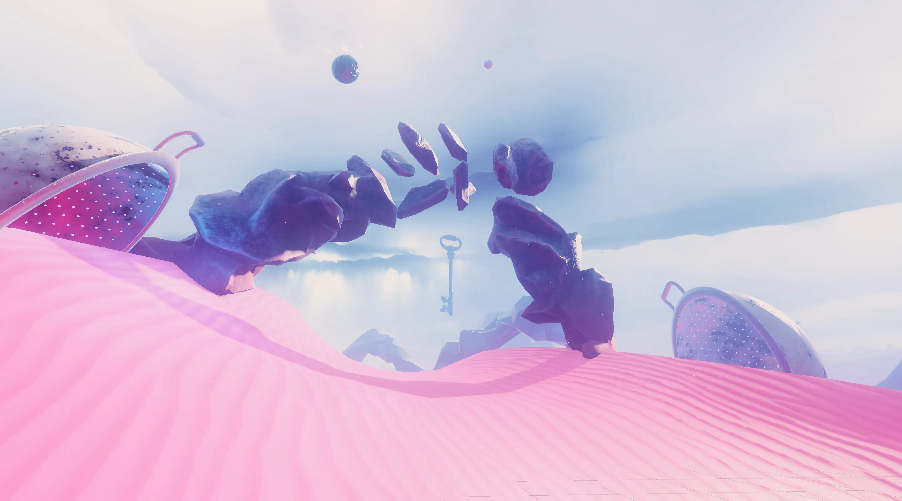 We built HOMECOMING as an interactive mixed-reality system that combines real-time 3D environments, embodied interaction, machine learning, and choreographic media. The experience places the player in a body-less state inside a surreal desert environment, navigating memory fragments through movement-based interaction rather than traditional controls.