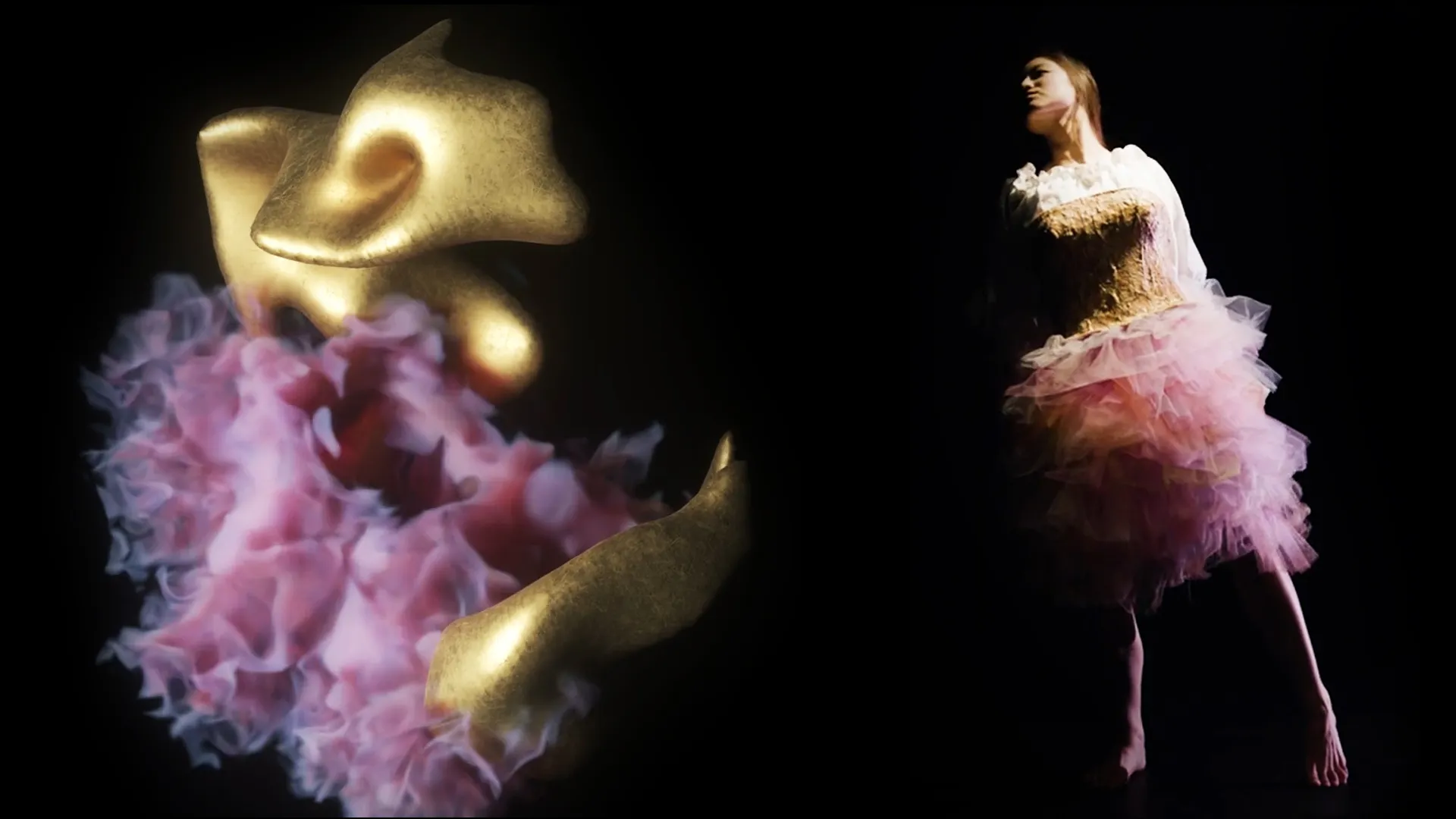 Due to Covid restrictions that were present at the time of LCF's class of 2020 graduation, the traditional fashion show was digitally recreated. The students' creations were worn by Alexander Whitley's dancers while performing choreographies that matched the envisioned backstory behind each costume. The dancers were recorded both in video as well as through motion capture and the footage was used to form a digital identity for each of the costumes.