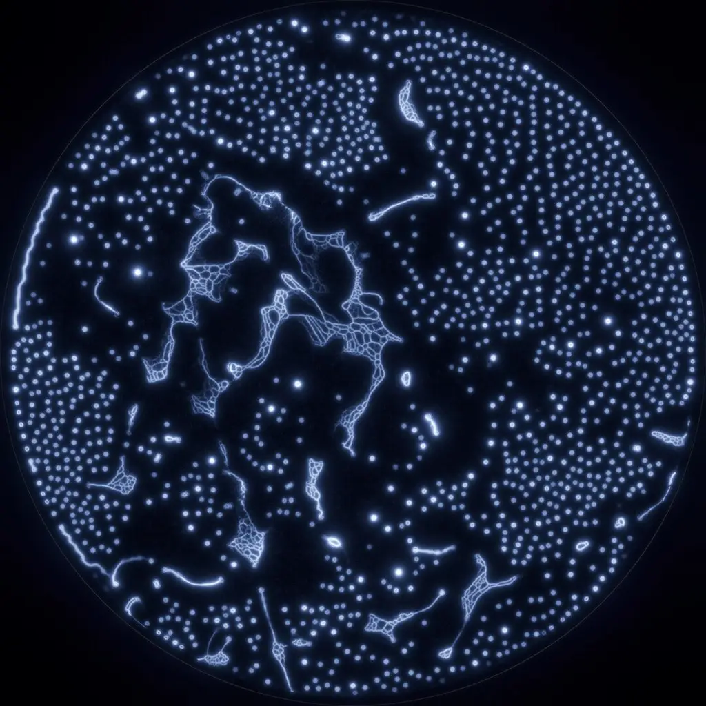 10-minute dome film of the Life-Death-Rebirth cycle of a digital micro-organism inspired by Physarum Polycephalum. Winner of the "Best Sound Driven Work" award at SAT Fest 2024